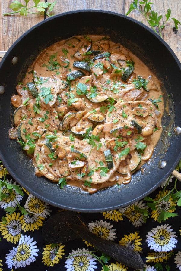 Comfort food in July because sometimes you just need it. This Creamy Stove Top Pork & Zucchini is worth standing over the stove for, even in July. With tender pork loin chops topped off with a creamy & flavoursome sauce, it is sure to be a winner whatever the season.