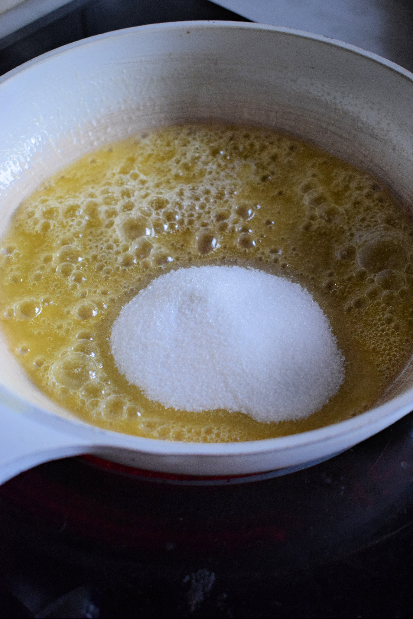 - Add the butter and stir it until it melts.