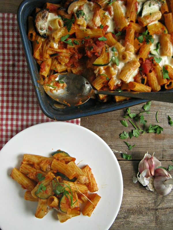 This Fusilli Pasta Bake with Bacon and Zucchini is a great comfort meal! Tender pasta noodles wrapped up in a creamy Gouda cheese sauce with salty bacon, zucchini and red peppers. A dish you can made in advance, pop in the fridge and bake just before serving. A great mid week dinner for the whole family.