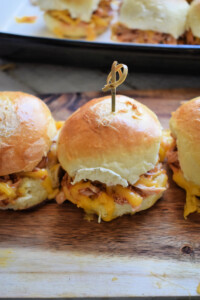 Here's your new summer sandwich! You're going to want to make these Barbecue Chicken Sliders all summer long. Tender pieces of shredded chicken in barbecue sauce topped with sharp cheddar cheese and sandwiched between a soft and sweet Hawaiian Dinner Roll.ย