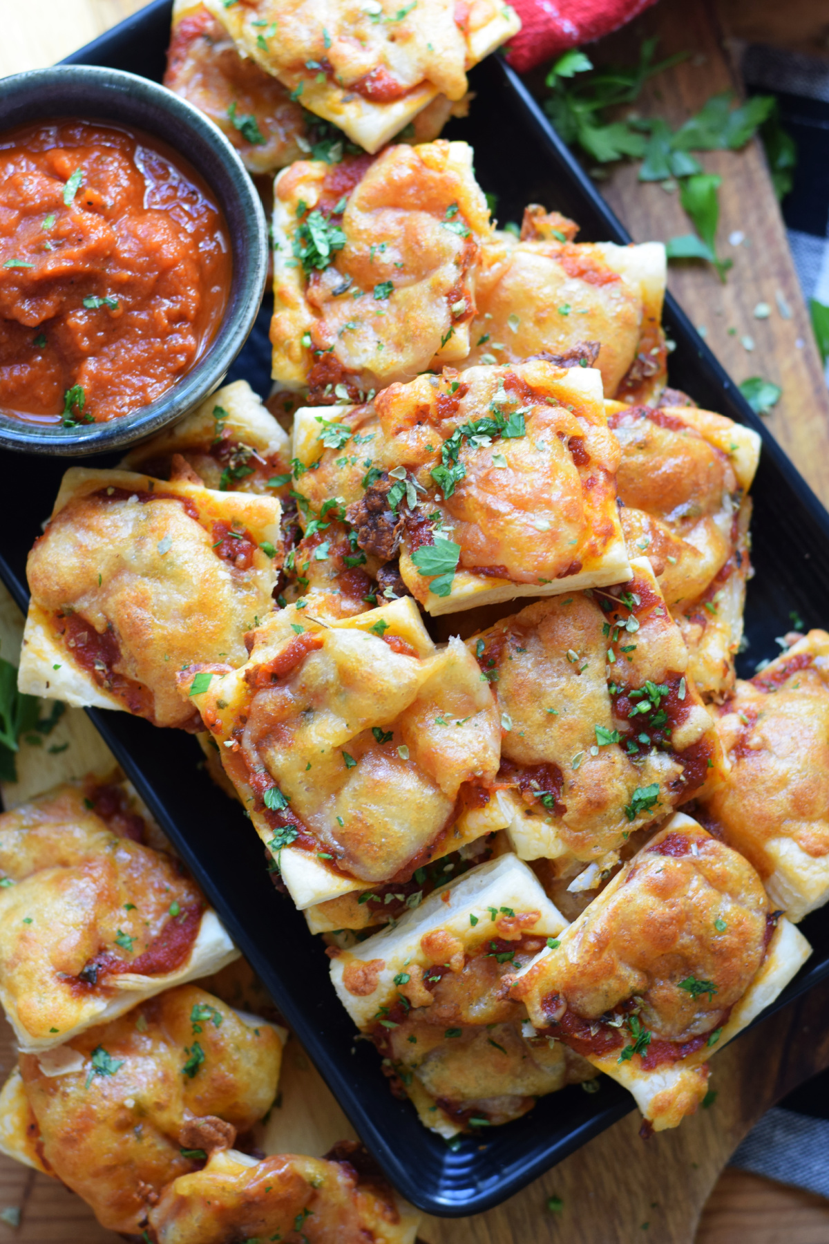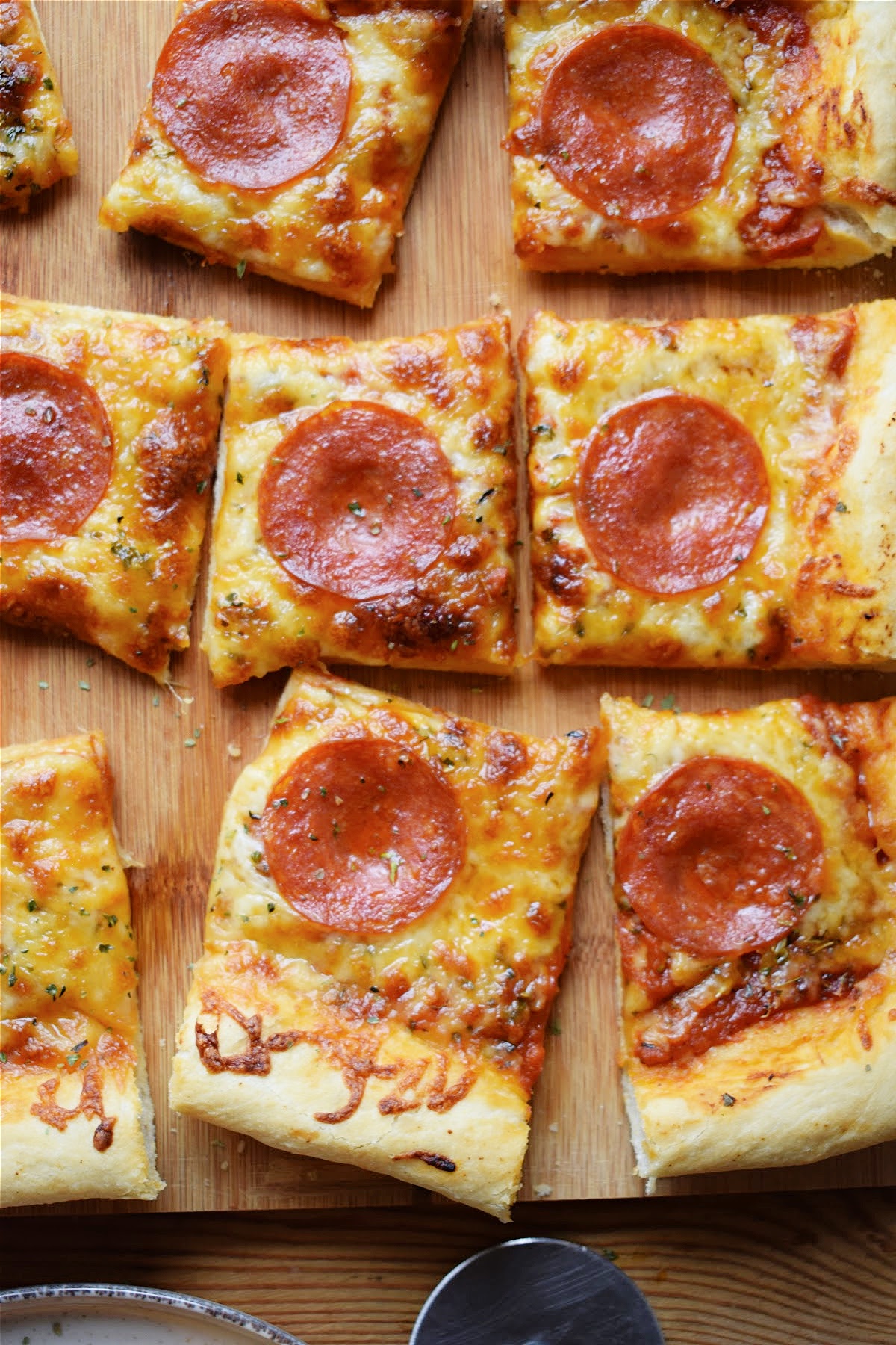 Pizza is great for weeknight dinners, weekend get togethers and even packed lunches. Thisย Sheet Pan Pepperoni Pizza Bitesย recipe is a take on myย Deep Dish Pepperoni Pizzaย and you'll love it!