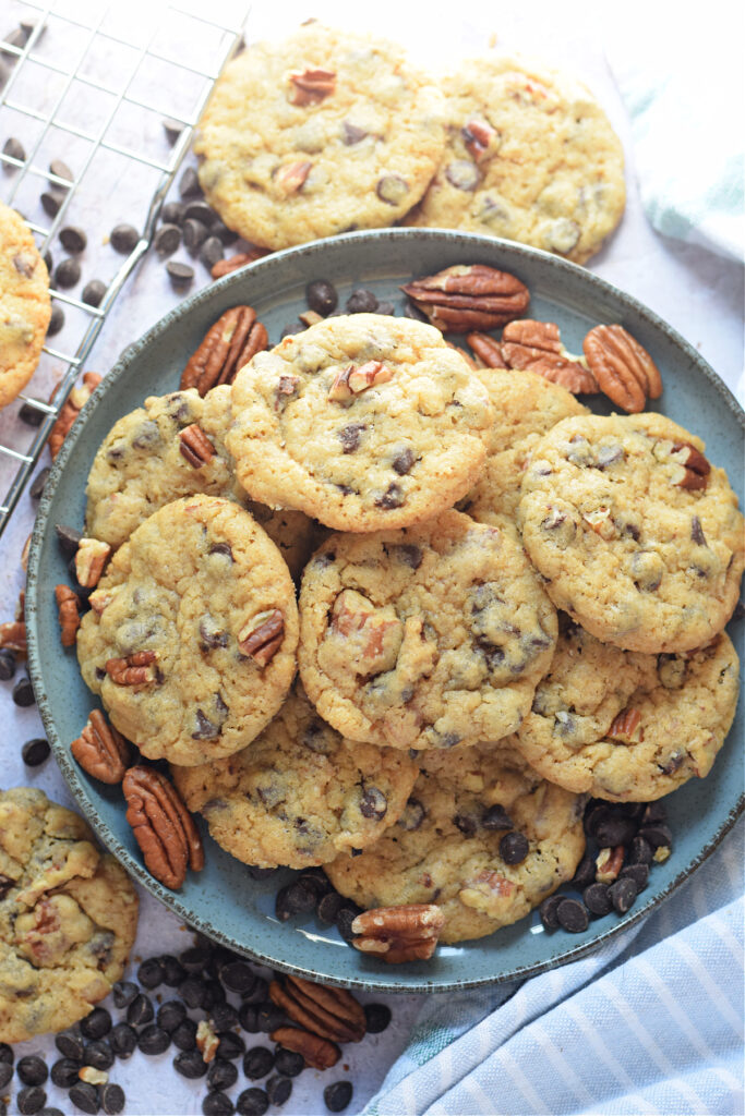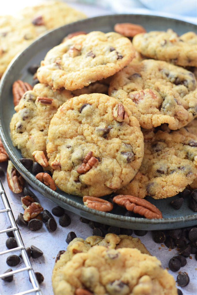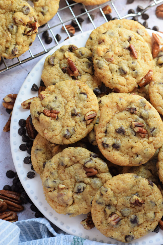 These Soft Pecan Chocolate Chip Cookies are the perfect bite. A buttery soft cookie filled with sweet chocolate chips and chewy pecans. Give them a try soon!