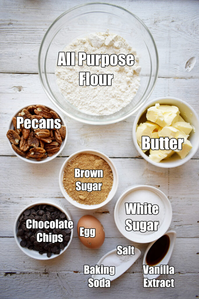 - Taste โ The absolute perfect cookie! A chewy buttery bite filled with pecans and chocolate chips.
